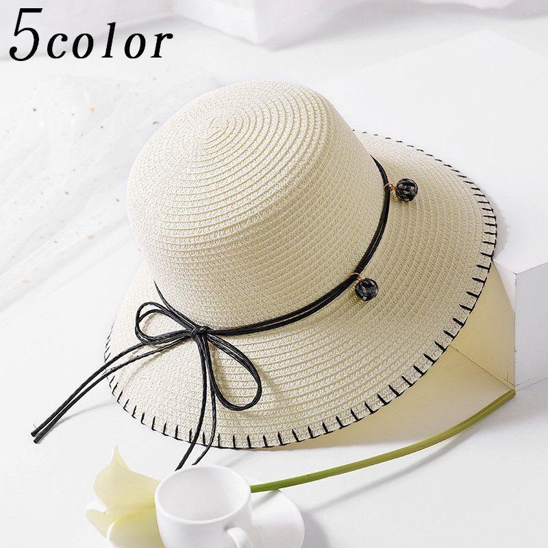 麦わら帽子 ストローハット 帽子 リボン付き つば広帽 つば広ハット レディース 麦藁帽子